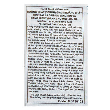 01 x Serum Khoáng Phục Hồi Chuyên Sâu Vichy Mineral 89 Serum 3ml