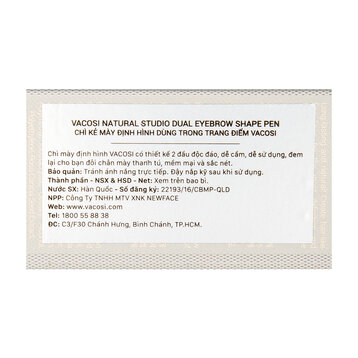 Hàng chân mày chính là yếu tố quyết định đến nhan sắc của gương mặt bạn. Vacosi Dual Eyebrow Shape Pen 5ml với thiết kế 3 đầu gồm đầu chì để vẽ chân mày, đầu cọ giúp chải hàng chân mày trở nên gọn gàng, ngăn nắp cùng đầu moose siêu mềm mịn nhằm để tán bột chì sẽ mang đến cho phái đẹp đôi chân mày đầy quyến rũ và sắc nét.
