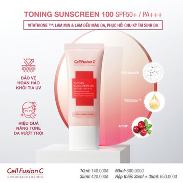 Kem Chống Nắng Nâng Tông Da Cell Fusion C Brightening Tone Up Sunscreen 100 SPF50+/ PA ++++ hiện đã có mặt tại với các dung tích khác nhau cho bạn lựa chọn: