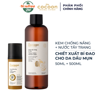 Combo Cocoon Kem Chống Nắng 50ml + Nước Tẩy Trang Bí Đao 500ml