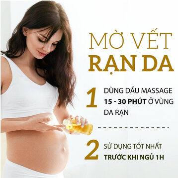 Ngăn rạn da: Sau khi tắm sạch, thoa một lượng dầu cám gạo vừa đủ lên vùng da bụng, đùi và massage nhẹ nhàng trong 15p trước khi đi ngủ, để qua đêm.