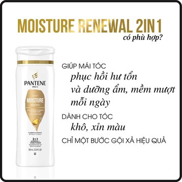 Dầu Gội & Xả Pantene Daily Moisture Renewal 2in1 Shampoo & Conditioner hỗ trợ phục hồi độ ẩm cho tóc, giúp tóc chắc khỏe và bóng mượt hơn, ngăn chặn vấn đề chẻ ngọn, gãy rụng. Sản phẩm thích hợp cho tóc khô, hư tổn và chẻ ngọn.