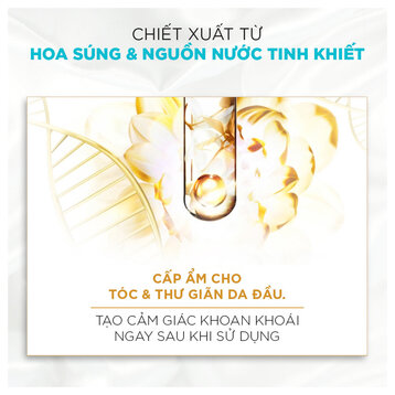 Chiết xuất cây bông súng giúp làm dịu và thư giãn da đầu, giảm thô ráp, tạo cảm giác khoan khoái dễ chịu ngay sau khi sử dụng.