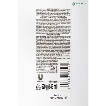 Dầu xả TRESemmé Salon Detox với công thức chứa thành phần thiên nhiên gồm gừng và trà xanh giúp detox và nuôi dưỡng tóc, giúp khôi phục lại mái tóc chắc khỏe chuẩn Salon tại nhà.