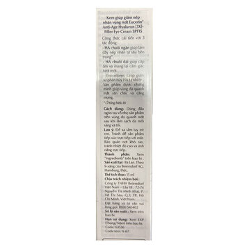 Kem Dưỡng Ngăn Ngừa Lão Hóa Vùng Mắt Eucerin Anti Age Hyaluron Filler 15ml