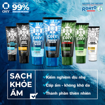 Kem Rửa Mặt OXY Perfect Wash Mới là sản phẩm sữa rửa mặt chăm sóc da dành cho nam giới đến từ thương hiệu OXY. Công thức chứa nguồn nước từ Vùng biển Iroise giàu khoáng chất kết hợp Công nghệ cấp ẩm HydraTech giúp làm sạch sâu bụi mịn PM2.5 gấp 3 lần, loại bỏ bã nhờn và tế bào chết hiệu quả, cho làn da sảng khoái, cực mát lạnh.