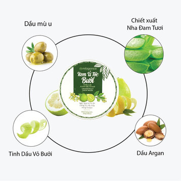 Kem Ủ Tóc Milaganics Tinh Dầu Bưởi Phục Hồi Hư Tổn 250g là sản phẩm kem ủ tóc đến từ thương hiệu mỹ phẩm Milaganics của Việt Nam, phục hồi tóc hư tổn nhờ cơ chế tác động sâu vào cấu trúc sợi tóc của các hoạt chất Cetrimonium Chloride, Quaternium-98, Ceteareth-25, Keratin và Biotin. Các hoạt chất này sẽ mở đường giúp cho lượng dưỡng chất có trong tinh dầu vỏ bưởi, nước nha đam, các loại dầu nền hoạt động mạnh mẽ hơn, đẩy nhanh quá trình tái tạo protein cho tóc chắc khỏe trở lại.