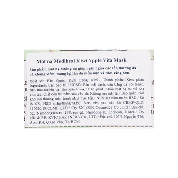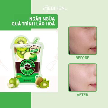 Mặt nạ được thiết kế dành cho làn da mụn & nhạy cảm, với thành phần được chiết xuất từ tinh chất Kiwi giàu Vitamin C giúp chống oxy hóa, ngăn ngừa các tổn thương da và kháng viêm, hỗ trợ giảm tấy đỏ, ngăn ngừa sẹo mụn; chiết xuất táo xanh giúp thanh tẩy tế bào chết mang lại làn da mềm mịn và tươi sáng hơn, hỗ trợ ngăn ngừa quá trình lão hóa. Mediheal Kiwi Apple Vita Mask sẽ giúp cho làn da của bạn có được những giây phút thư giãn toàn diện.