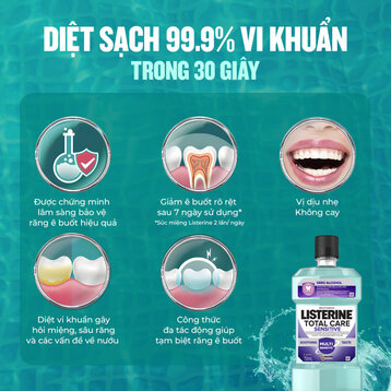 • Giúp diệt 99,9% vi khuẩn gây hôi miệng, mảng bám và các vấn đề về nướu.
