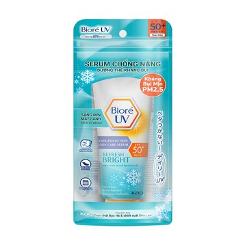 Serum Chống Nắng Dưỡng Thể Bioré là dòng sản phẩm chống nắng toàn thân kết hợp dưỡng thể đến từ thương hiệu Bioré, giúp chống nắng tối ưu cho làn da với chỉ số SPF50+ PA +++. Kết hợp màng chắn kháng bụi vượt trội giúp bảo vệ da khỏi bụi bẩn, kể cả bụi mịn PM 2.5. Ngoài ra, công thức được bổ sung thêm Vitamin B3 và chiết xuất Cam Yuzu Nhật Bản giúp dưỡng da sáng mịn, đều màu.