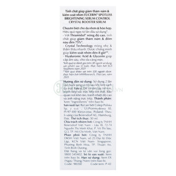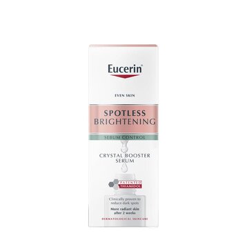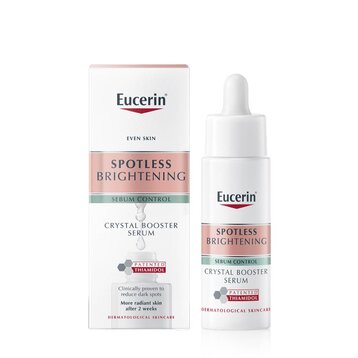 Serum Eucerin Giảm Thâm Nám Cho Da Nhờn 30ml - Spotless Brightening Crystal Booster Serum mới đến từ Eucerin với công nghệ Crystal Technology giúp kiểm soát nhờn suốt 8 giờ và thành phần đặc trị độc quyền Thiamidol của Eucerin giúp mang lại hiệu quả chỉ sau 2 tuần sử dụng. Sản phẩm lý tưởng dành cho làn da dầu & hỗn hợp quan tâm đến vấn đề đặc trị thâm nám, đốm nâu và dưỡng sáng da.