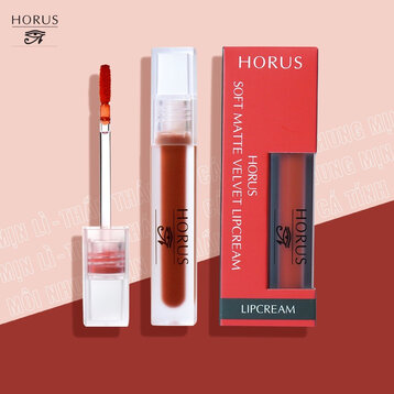 Son Kem Horus Soft Matte Velvet Lipcream 3g là sản phẩm son kem đến từ thương hiệu trang điểm Horus của Trung Quốc. Son kem có kết cấu dạng liquid truyền thống, siêu lỳ và bền màu trên môi. Mặc dù là son kem lỳ nhưng sản phẩm được bổ sung những dưỡng chất làm mềm và mịn môi, giúp đôi môi lỳ mà vẫn không khô, nặng môi hoặc xuất hiện nhiều rãnh môi sâu. Các màu son đa dạng từ nhạt sang đậm, từ sắc nude cam nhẹ nhàng đến đỏ nâu đất trầm và khác biệt, tuy nhiên cả 5 màu đều có thể dễ dùng và dễ dàng phù hợp cho mọi tông da.
