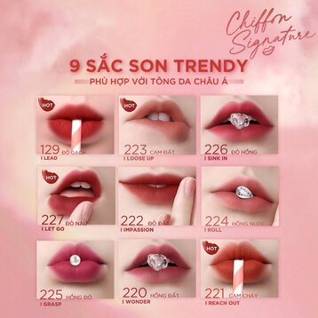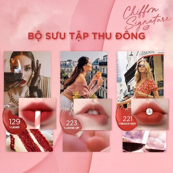• Bộ sưu tập Chiffon Signature mới với 9 tông màu son kem thời thượng, nổi bật cho nàng dễ dàng chọn lựa.
