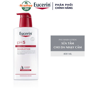 Eucerin pH5 Washlotion là sản phẩm sữa tắm dịu nhẹ dành cho da nhạy cảm đến từ thương hiệu dược mỹ phẩm Eucerin của Đức, với thành phần pH5 Citrate Buffer giúp làm sạch nhẹ nhàng và tạo điều kiện cho da thực hiện tốt cơ chế bảo vệ tự nhiên trước những tác động của môi trường.