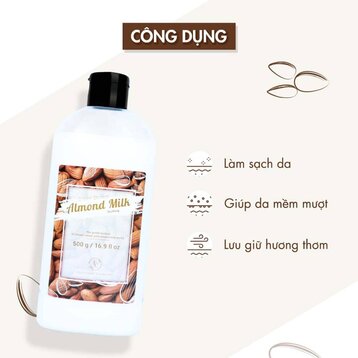 Sữa tắm chiết xuất hạnh nhân và sữa giúp thúc đẩy quá trình hydrat hóa tự nhiên, làm sáng da, giúp da mềm mại. Hương thơm sữa hạnh nhân ngọt dịu, giúp giảm căng thẳng và mệt mỏi hiệu quả.