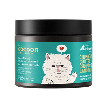 Tẩy Da Chết Toàn Thân Cocoon Cà Phê Đắk Lắk là dòng tẩy tế bào chết toàn thân từ thương hiệu mỹ phẩm Cocoon của Việt Nam là một trong những sản phẩm với thành phần tự nhiên có nguồn gốc trong nước như hạt cà phê Đắk Lắk nguyên chất xay nhuyễn, hòa quyện cùng bơ cacao Tiền Giang giúp loại bỏ tế bào chết hiệu quả, làm đều màu da, mang lại năng lượng, giúp da trở nên mềm mại và rạng rỡ giúp mang đến cho bạn sản phẩm thuần chay tốt nhất với niềm tự hào từ nguyên liệu thuần Việt.