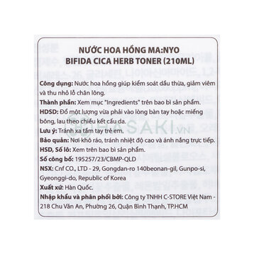 Toner Ma:nyo Bifida Cica Herb Toner Rau Má Tẩy Tế Bào Chết & Tái Tạo Da 210ml hiện đã có mặt tại .