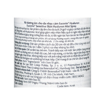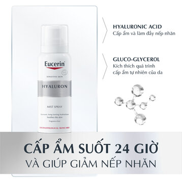 Xịt Khoáng Eucerin Hyaluron Mist Spray Dưỡng Ẩm Da là nước xịt khoáng đến từ thương hiệu mỹ phẩm Eucerin của Đức, với công thức chứa Hyaluronic Acid trọng lượng tối ưu cho hiệu quả dưỡng ẩm vượt trội, không chỉ mang đến sự tươi mát tức tức thì cho làn da mà còn làm giảm nếp nhăn hiệu quả, cho làn da trẻ trung và căng mịn, rạng rỡ suốt cả ngày dài.