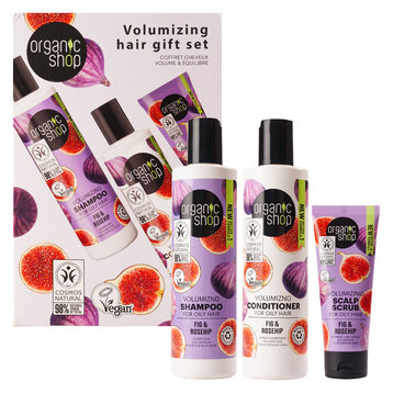 Organic Shop Volumizing For Oily Hair - Fig & Rosehip với công thức thuần chay và 98% thành phần nguồn gốc tự nhiên giúp bạn nhẹ nhàng làm sạch và chăm sóc tóc mà không làm mất đi các loại dầu tự nhiên trên da đầu, nuôi dưỡng tóc chắc khỏe, giảm gãy rụng và xơ rối.