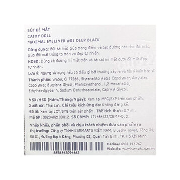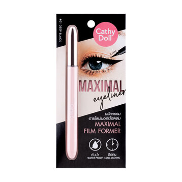 Bút kẻ mắt siêu mảnh Maximal Eyeliner đến từ thương hiệu mỹ phẩm Cathy Doll Thái Lan với công nghệ tiên tiến Maximal Film Former tạo lớp màng chống nước và thiết kế đầu bút ma thuật siêu mảnh 0,1mm, dễ dàng điều chỉnh nét bút sắc nét tự nhiên. Chất eyeliner lỏng nhẹ, bám dính tốt, không lem trôi cả ngày, cho bạn đường kẻ mắt sắc nét, cuốn hút mọi ánh nhìn.
