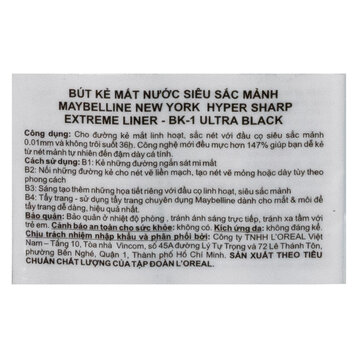 Bút Kẻ Mắt Nước Sắc Mảnh Maybelline Hyper Sharp Liner Extreme 0.4g là sản phẩm kẻ mắt nước đến từ thương hiệu mỹ phẩm Maybelline của Mỹ, áp dụng công nghệ Ink Capsule mới giúp dòng mực ra đều hơn 147% và đậm nét hơn so với phiên bản cũ đồng thời giữ đường eyeliner bền màu suốt 36 giờ. Với đầu cọ sắc mảnh 0,01mm giúp bạn linh hoạt tạo ra những đường kẻ như ý.