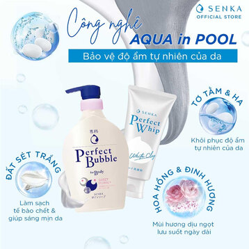 Sữa Tắm Dưỡng Ẩm Hương Hoa Dịu Ngọt Senka Perfect Bubble For Body Sweet Floral với công nghệ cảm biến chuyển hóa mùi hương từ mồ hôi và mùi cơ thể, giúp làm sạch da, ngăn cơ thể khỏi mùi khó chịu. Đồng thời, với công thức giàu bọt Tơ Tằm Trắng giúp cung cấp độ ẩm nuôi dưỡng làn da ẩm mịn, mềm mượt, lưu lại hương hoa dịu ngọt trên làn da.