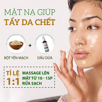 Dưỡng ẩm da: Rửa mặt sạch, thoa 2-3 giọt dầu dừa lên da và massage nhẹ nhàng, để tẩy sạch bụi bẩn, giúp làn da được dưỡng ẩm đầy đủ, mịn màng. Đối với da dầu, sau khi massage chỉ nên giữ lại trong vòng 20p, sau đó rửa sạch bằng nước, để tránh tình trạng bít kín lỗ chân lông gây ra nhân mụn.