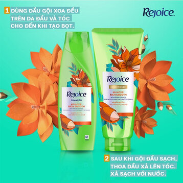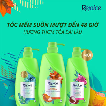 Rejoice là thương hiệu chăm sóc tóc thuộc tập đoàn P&G. Dòng sản phẩm dầu gội Rejoice được thiết kế với nhiều phân loại khác nhau như sạch gàu, ngăn ngừa tóc rụng, khô rối... mang đến cho bạn một mái tóc mượt mà và lưu giữ hương thơm bền lâu.