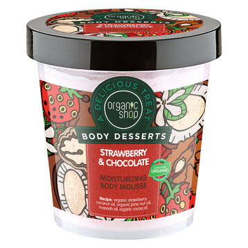 Dưỡng Thể Organic Shop Body Dessert Strawberry & Chocolate Moisturizing Body Mousse 450ml chứa bơ cacao và nhiều loại tinh dầu dưỡng ẩm sâu cho da, kết cấu đặc nên rất phù hợp với da khô, cần nhiều độ ẩm với hương thơm quả mọng chín. Thành phần gốc thực vật lành tính, không chứa paraben, silicone. - Sản phẩm phù hợp với mọi loại da, đặc biệt da khô, bong tróc, thiếu ẩm.