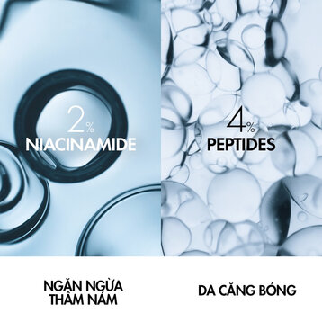 Hoạt chất da liễu [5% Niacinamide + Probiotic Fraction + Peptide] giúp cải thiện và ngăn ngừa lão hóa, thâm nám đốm nâu.