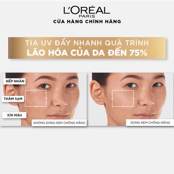 Có thể bạn chưa biết: 75% các dấu hiệu lão hóa da do tia cực tím (UVB và UVA) trong ánh nắng mặt trời gây ra. Bộ sưu tập Kem Chống Nắng UV Defender MỚI từ L’Oreal Paris sẽ là giải pháp bảo vệ tối ưu nhất cho da mặt, với chỉ số chống nắng mạnh mẽ SPF50+ và PA++++ giúp ngăn ngừa lão hóa, đốm nâu và tình trạng da xỉn màu do tia UV gây ra, đồng thời chăm sóc và dưỡng ẩm da. Công nghệ chống nắng thế hệ mới chứa 2 lớp màng bảo vệ bao gồm màng lọc Mexoryl SX và Mexoryl XL giúp cản tia UVA và UVB bền bỉ tối ưu suốt cả ngày dài.