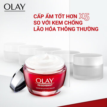 Olay Regenerist Micro-Sculpting Cream là dòng kem dưỡng ngăn ngừa lão hóa Regenerist bán chạy nhất và tiên tiến nhất của Olay. Công thức chứa phức hợp Amino-peptide tiên tiến có khả năng thấm sâu vào bề mặt da; kết hợp cùng thành phần Hyaluronic Acid và Niacinamide (Vitamin B3), giúp làm săn chắc, căng mịn da và làm giảm rõ rệt sự xuất hiện của các nếp nhăn, mang đến cho bạn làn da tươi trẻ hơn chỉ trong 4 tuần sử dụng.