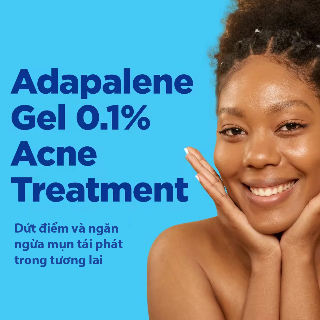 Adapalene 0.1% – Dẫn xuất retinoid thế hệ mới, giúp điều hòa quá trình sừng hóa, giảm tắc nghẽn lỗ chân lông và ngăn ngừa mụn mới hình thành.