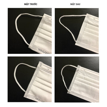 Mở rộng khẩu trang và chứ ý đến hướng đeo khẩu trang cho đúng.