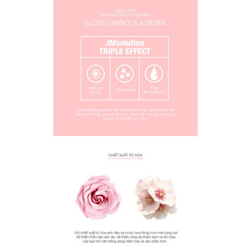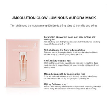 Mặt Nạ JMsolution Dưỡng Sáng Da Chiết Xuất Tinh Dầu Aurora chiết xuất từ bột ngọc trai, tinh chất hoa hồng và hoa anh đào, tinh dầu Aurora, peptide Vital và ba loại axit hyaluronic… giàu dưỡng chất bổ sung và cấp nước cho làn da có chức năng kép giúp dưỡng sáng da và cải thiện nếp nhăn hiệu quả.