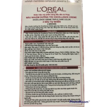 Màu Nhuộm L'Oreal Dưỡng Tóc Phủ Bạc 4 Nâu Tự Nhiên 172ml