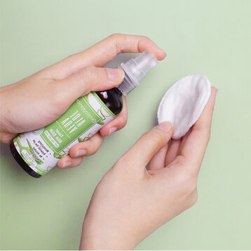 Sau khi làm sạch da với sữa rửa mặt, xịt 1 lượng toner vừa đủ vào bông tẩy trang và nhẹ nhàng lau khắp da mặt.