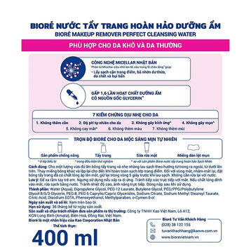 Nước Tẩy Trang Hoàn Hảo Bioré là dòng sản phẩm nước tẩy trang làm sạch da đến từ Bioré - thương hiệu mỹ phẩm chăm sóc da thuộc tập đoàn KAO, với công nghệ Micellar từ Nhật Bản làm sạch lớp trang điểm, bã nhờn, dầu thừa, để da mộc luôn sạch sâu. Đặc biệt, công thức được chứng minh với 7 kiểm chứng dịu nhẹ, giúp sản phẩm tuyệt đối an toàn cho da.