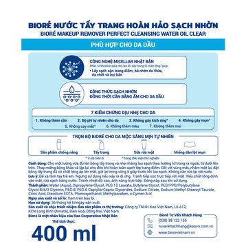 • Nước Tẩy Trang Hoàn Hảo Sạch Nhờn Bioré với công thức sạch nhờn và cân bằng ẩm, phù hợp cho da nhiều dầu thừa và da dễ bị mụn.