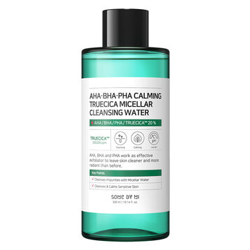 Nước Tẩy Trang AHA-BHA-PHA Calming Truecica Micellar Cleansing Water đến từ thương hiệu mỹ phẩm Some By Mi giúp loại bỏ tạp chất và lớp trang điểm từ sâu bên trong lỗ chân lông, đồng thời làm dịu da với các chiết xuất Rau Má, Tràm Trà và Ngải Cứu. Bên cạnh đó, phức hợp các thành phần AHA, BHA và PHA sẽ nhẹ nhàng loại bỏ da chết, cùng với Niacinamide và Hyaluronic Acid giúp giảm thiểu tình trạng lỗ chân lông to và làm sáng màu da.
