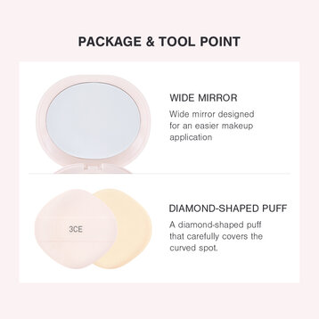 • Thiết kế bông mút hình kim cương với phần cạnh được uốn cong tinh tế giúp che phủ một cách tối đa những vùng công trên khuôn mặt như hai bên cánh mũi hoặc quanh mắt, giúp đem lại lớp nền được tán đều trên toàn bộ khuôn mặt.