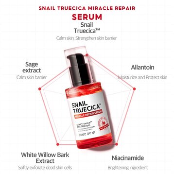 Sau quãng thời gian dài đau khổ "chiến đấu kịch liệt" với "giặc" mụn, làn da mỏng manh của chúng ta phải chịu nhiều tổn thương và thường để lại thâm, sẹo mụn, lỗ chân lông to, da trở nên nhạy cảm và yếu hơn... Lúc này chúng ta lại phải bắt đầu tiếp tục công cuộc "chiến đấu" lần thứ 2 là nuôi dưỡng và phục hồi lại làn da, chữa lành các tổn thương do mụn để lại. Thấu hiểu điều đó, Some By Mi đã cho ra đời sản phẩm tinh chất Snail Truecica Miracle Repair Serum như một vị "cứu tinh" cho làn da của bạn. Với thành phần và công thức độc quyền hỗ trợ điêu trị sẹo mụn và thu nhỏ lỗ chân lông hiệu quả, phục hồi lại làn da khỏe mạnh và tràn đầy sức sống.