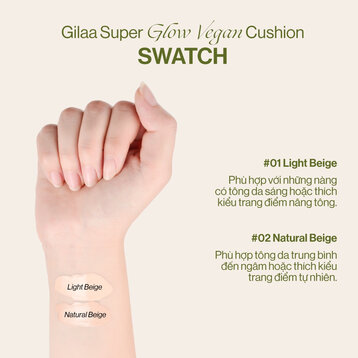 Hiện sản phẩm Siêu Phấn Nước Gilaa Vegan Super Glow Cushion SPF50+ PA++++ 15g đã có mặt tại với 2 màu:
