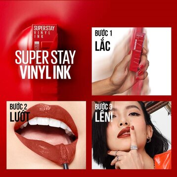 Superstay Vinyl Ink là dòng son bóng mới của thương hiệu Maybelline New York - đột phá với công nghệ “khóa” màu, cho khả năng lên màu chuẩn và đặc biệt bền màu, thách thức lem trôi. Đồng thời, son vẫn cực kì nhẹ mướt, để lại lớp bóng nhẹ tinh tế, cho đôi môi căng tràn sức sống. Son bóng lên màu chuẩn, nhưng vẫn duy trì độ ẩm và giữ được sự mềm mịn cho môi.