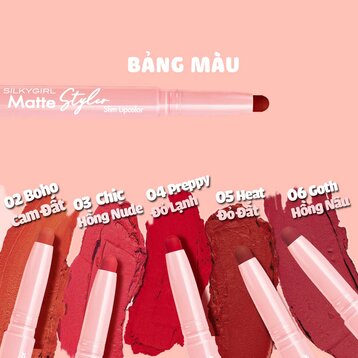 Son Bút Chì SILKYGIRL Matte Styler Slim Lipcolor là dòng son lì thế hệ mới của thương hiệu SILKYGIRL đến từ Malaysia, với thiết kế dạng son bút chì sở hữu thân hình “mình dây” thanh mảnh phong cách, chuẩn xu hướng, cùng chất son mịn lì như kem - mềm mượt như lụa, giúp đôi môi lên màu chuẩn sắc và tươi tắn nổi bật trong suốt cả ngày dài.