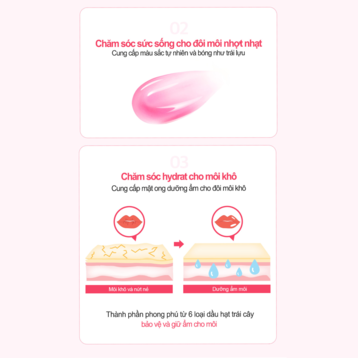 Môi phũ mật ong ngọt ngào làm tăng thêm vẻ căng mọng và bảo vệ khỏi các kích ứng có hại cho môi.