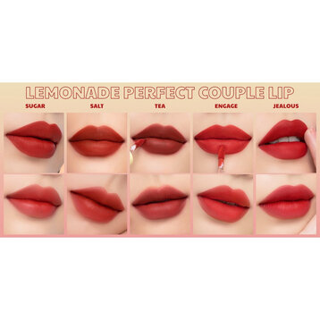 Son Kem Lì 2 Đầu Lemonade Perfect Couple Lip Version 2 7.5g là sản phẩm son kem đến từ thương hiệu mỹ phẩm Lemonade của Việt Nam. Sự trở lại của 5 màu son "Best Selling" trong bộ sưu tập Perfect Couple Lip với phương diện hoàn hảo hơn, nhiều dưỡng chất hơn và sự thay đổi packaging trẻ trung hơn.