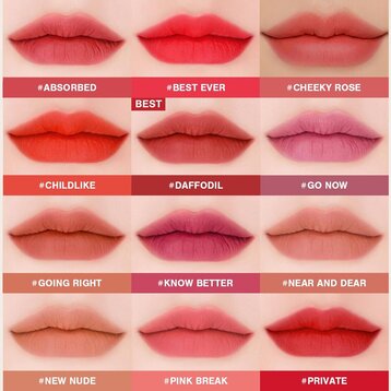 Son Kem Lì Mịn Màng Như Nhung 3CE Velvet Lip Tint hiện đã có mặt tại với bảng màu vô cùng đa dạng cho bạn có thể thỏa sức lựa chọn: