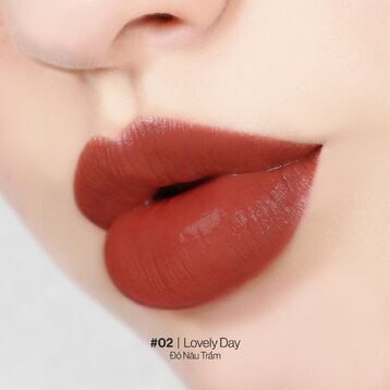 • #02 Lovely Day - Đỏ Nâu Trầm Khác Biệt: Hợp với kiểu trang điểm mắt khói khi đánh full môi, nếu chỉ trang điểm nhẹ nhàng thì đánh lòng môi cũng rất xinh.