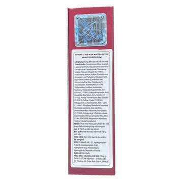 Thành phần sản phẩm Dimethicone, Silica, Isoamyl Laurate, Synthetic Wax, Dimethicone/Vinyl Dimethicone Crosspolymer, Diisostearyl Malate, Titanium Dioxide (CI 77891), Isoeicosane, Barium Sulfate, Dimethicone Crosspolymer, Phytosteryl Macadamiate , Euphorbia Cerifera (Candelilla) Wax, Microcrystalline Wax, Polyglyceryl 2 Triisostearate, Polyethylene, Copernicia Cerifera (Carnauba) Wax, C10-18 Triglycerides, Sorbitan Isostearate, Diglyceryl Sebacate/Isopalmitate, Polyhydroxystearic Acid, Candelilla Wax Esters, Phenyl Trimethicone, Polyglyceryl-2 Diisostearate, Ethylhexyl Palmitate, Isopropyl Myristate, Isostearic Acid, Lecithin, Disteardimonium Hectorite, Polyglyceryl-3 Polyricinoleate , Magnesium Myristate, Triethyl Citrate, Tocopherol, Iron Oxides (CI 77491), Iron Oxides (CI 77492), Red 28 Lake (CI 45410), Yellow 5 Lake (CI 19140), Red 7 Lake (CI 15850), Iron Oxides (CI 77499), Blue 1 Lake (CI 42090), etc
